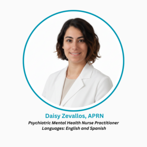 Daisy Zevallos, APRN, is a Psychiatric Mental Health Nurse Practitioner with a Master of Science in Nursing and a specialized certification in psychiatric mental health from Nova Southeastern University. Motivated by the growing mental health crisis, Daisy dedicated her career to providing compassionate, individualized care to clients across the lifespan.